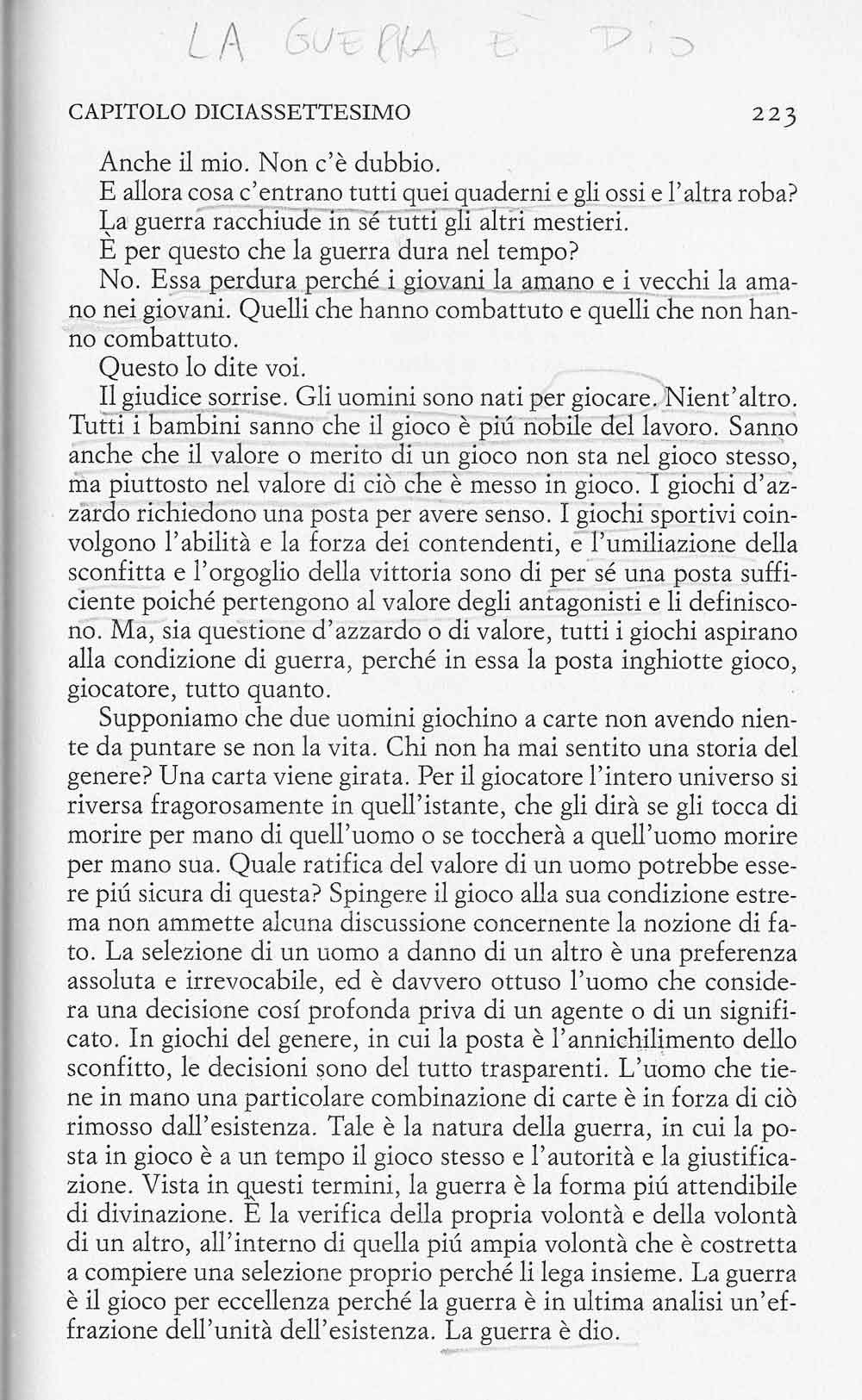 Una delle pagine più belle del libro. La guerra è Dio.