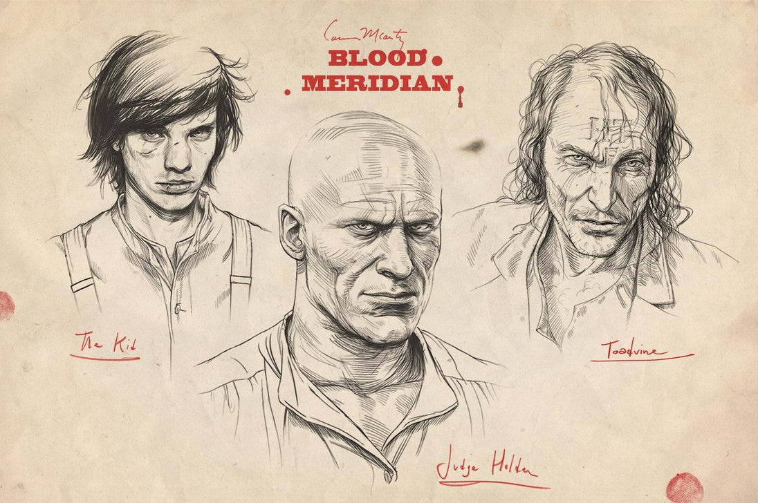 Non avrei mai scritto che Meridiano è un libro sui personaggi più che sulla trama se non ne fossi convinto. Fatevi un giro su Pinterest o Tumblr e troverete un sacco di fan art sui personaggi principali del libro. Poi ci sono Glanton, Toadvine, Sproule, Tobin lo spretato.